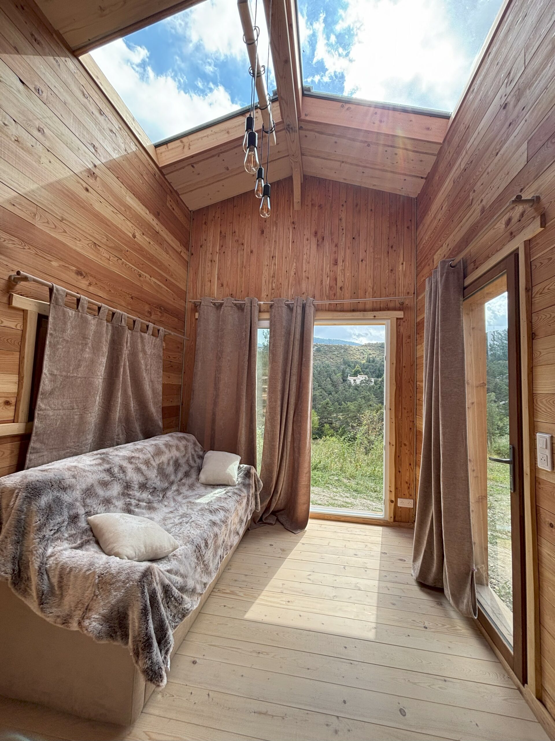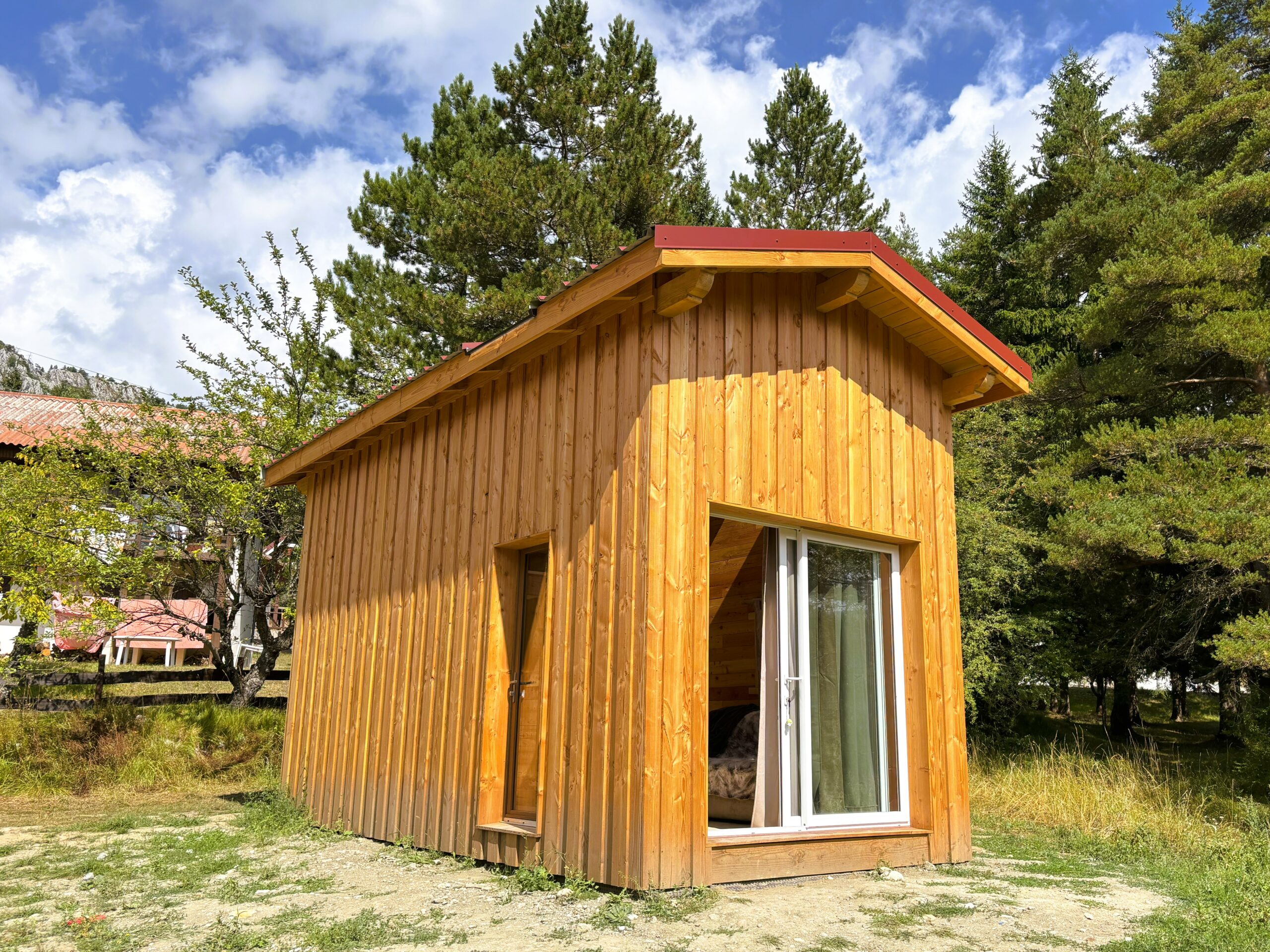Ce petit chalet tout en bois de mélèze local vous offre: