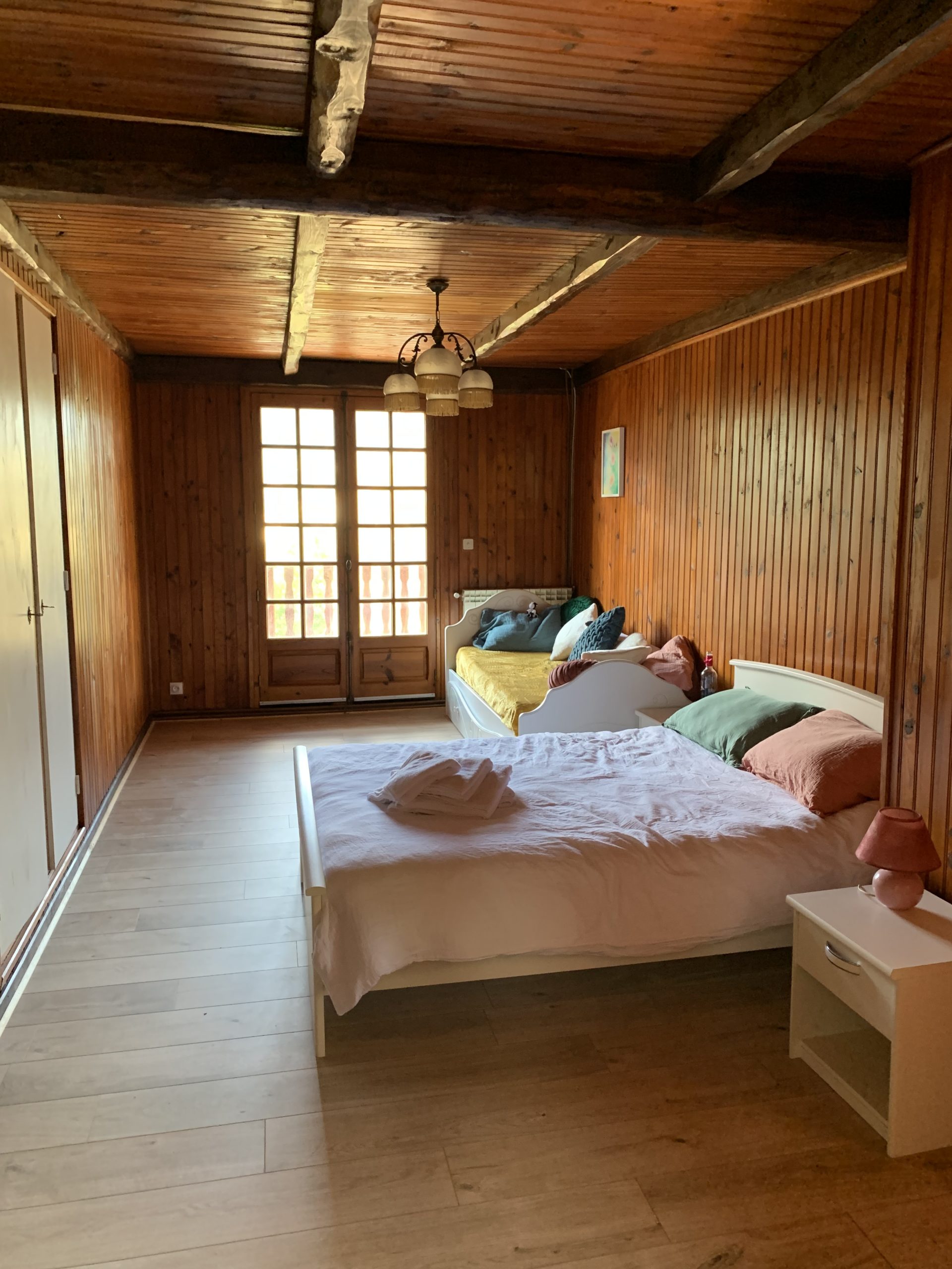 Chambre spacieuse donnant sur balcon, 1 lit double 140 et 2 lits gigognes pour 2 enfants